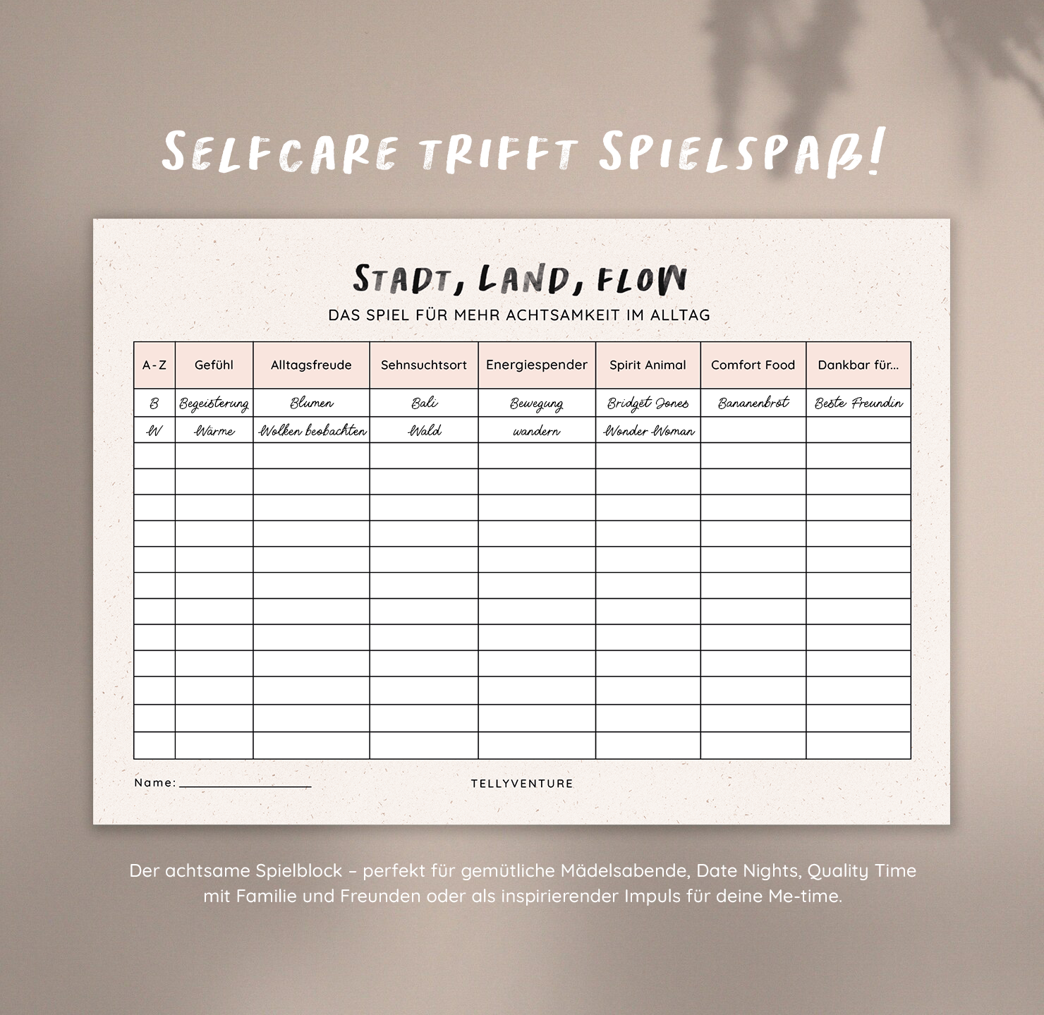 Achtsamer Spielblock "Stadt, Land, Flow"